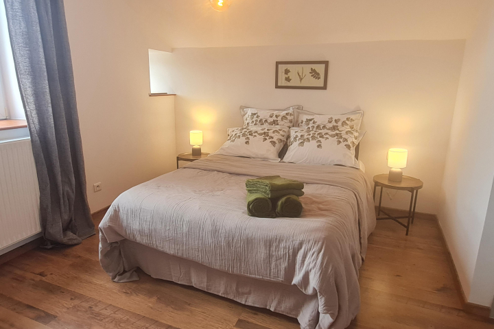 In the evening, after a busy day with your head full of beautiful memories and landscapes, you will want to go upstairs by taking the wooden staircase. You will then have the choice between 3 beautiful rooms, each decorated on the theme of plants.